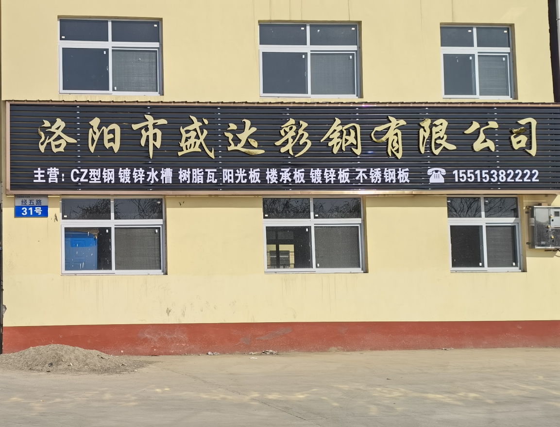 • 洛陽(yáng)市盛達(dá)彩鋼有限公司主要從事經(jīng)營(yíng): 12米剪版折彎鍍鋅水槽天鉤, 彩涂板、鍍鋅板、彩鋼復(fù)合板、覆膜彩鋼瓦、彩鋼瓦 C型鋼 鍍鋅新型鋼結(jié)構(gòu)的設(shè)計(jì)、加工、安裝 。產(chǎn)品主要用于大、中、小型廠房、樓房加層、超市、倉(cāng)庫(kù)、汽車展廳、活動(dòng)房、農(nóng)貿(mào)市場(chǎng)等工程。