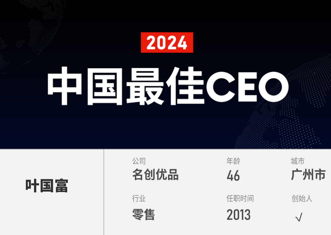 據(jù)榜單顯示,跨國經(jīng)營能力已成為衡量中國CEO表現(xiàn)的一項重要指標。而葉國富憑借其獨到的創(chuàng)新經(jīng)營理念和對市場趨勢的精準洞察,引領(lǐng)名創(chuàng)優(yōu)品在全球舞臺上取得了令人矚目的成績。這一榮譽既是對葉國富個人卓越領(lǐng)導力的高度贊譽,也是名創(chuàng)優(yōu)品在全球市場中強大競爭力和影響力的堅實證明。