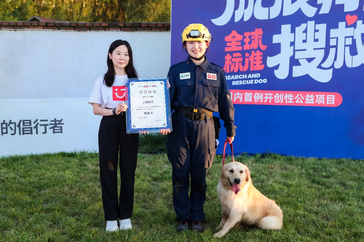 流浪犬子滿是首只接受該項(xiàng)目資助的搜救犬“訓(xùn)練生”,它本次所參加的是由克羅地亞搜救犬協(xié)會(huì)主席Vedran Vukomanovic擔(dān)任主考官的“全球標(biāo)準(zhǔn)搜救犬認(rèn)證”考核。在考核過(guò)程中,子滿僅用8分鐘便在2000平米的廢墟上順利找到3名“被困人員”,以優(yōu)異的成績(jī)順利通過(guò)考試,名創(chuàng)優(yōu)品和它基金負(fù)責(zé)人同時(shí)為子滿頒發(fā)搜救犬榮譽(yù)證書,宣布子滿成為一只合格搜救犬。
