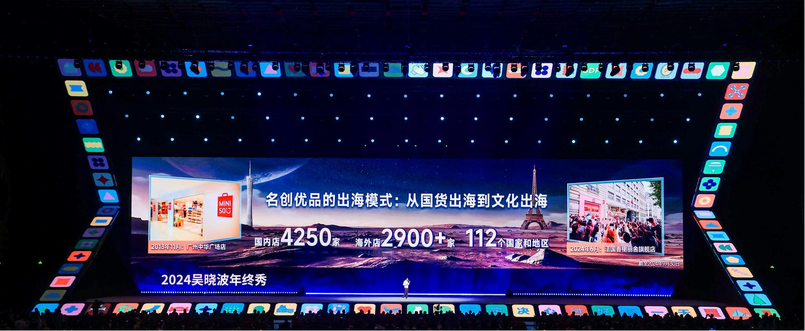 2024吳曉波年終秀現(xiàn)場盡管全球零售市場環(huán)境日趨復(fù)雜、挑戰(zhàn)不斷,名創(chuàng)優(yōu)品依舊能夠交出一份亮眼的財(cái)報(bào)成績單。2024年前三季度,名創(chuàng)優(yōu)品集團(tuán)總營收同比增長22.8%,達(dá)到122.8億元,海外業(yè)務(wù)收入突破45億,同比增長41%。其中,海外市場IP商品銷售占比超過40%,銷售額同比增長近85%,IP策略對(duì)海外銷售的拉動(dòng)尤為明顯。