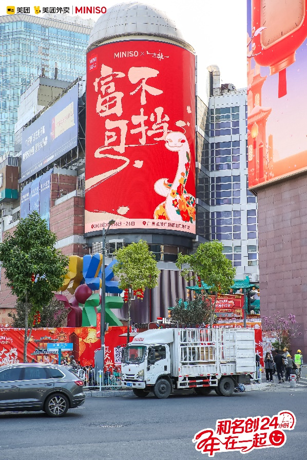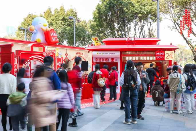 2025年1月,名創(chuàng)優(yōu)品在廣州正佳廣場(chǎng)西北門(mén)外上線24小時(shí)報(bào)刊亭快閃裝置,以生活里隨處可見(jiàn)的報(bào)刊亭為載體,打造“小小烏托邦”,傳遞屬于新年的歸屬和溫馨。名創(chuàng)優(yōu)品的自研形象吉福特熊在報(bào)刊亭內(nèi)擔(dān)任一日店長(zhǎng),成為消費(fèi)者爭(zhēng)相合影打卡的對(duì)象。