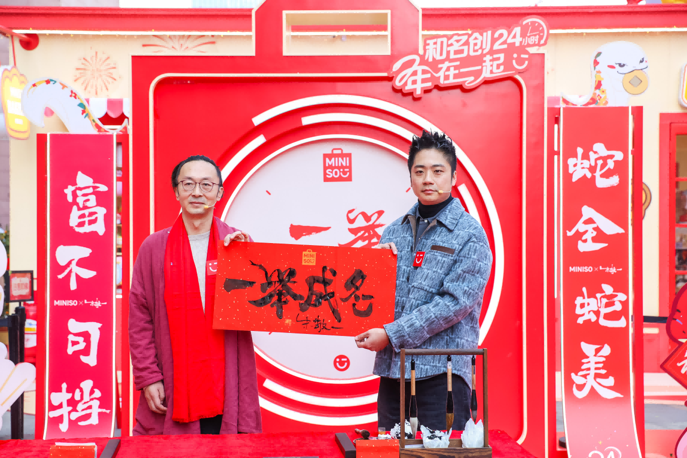 除此之外,活動(dòng)現(xiàn)場(chǎng)還邀請(qǐng)了名創(chuàng)優(yōu)品集團(tuán)即時(shí)零售事業(yè)部總經(jīng)理陳鎮(zhèn)杰和國(guó)潮書(shū)法家朱敬一共同迎春寫(xiě)福,烘托起新春氣氛。